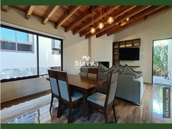 Bella propiedad semi amueblada que destaca por su diseño funcional y acabados de muy buena calidad. La integración de espacios abiertos permite una transición fluida entre la estancia y su área exterior (jardín).